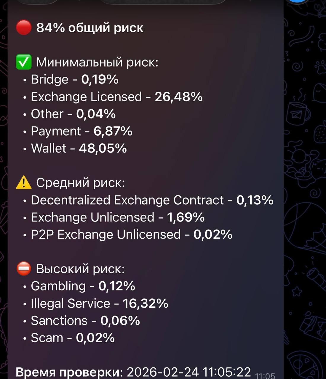 Если Risk Score выше 50% — вероятность блокировки на бирже очень высокая.